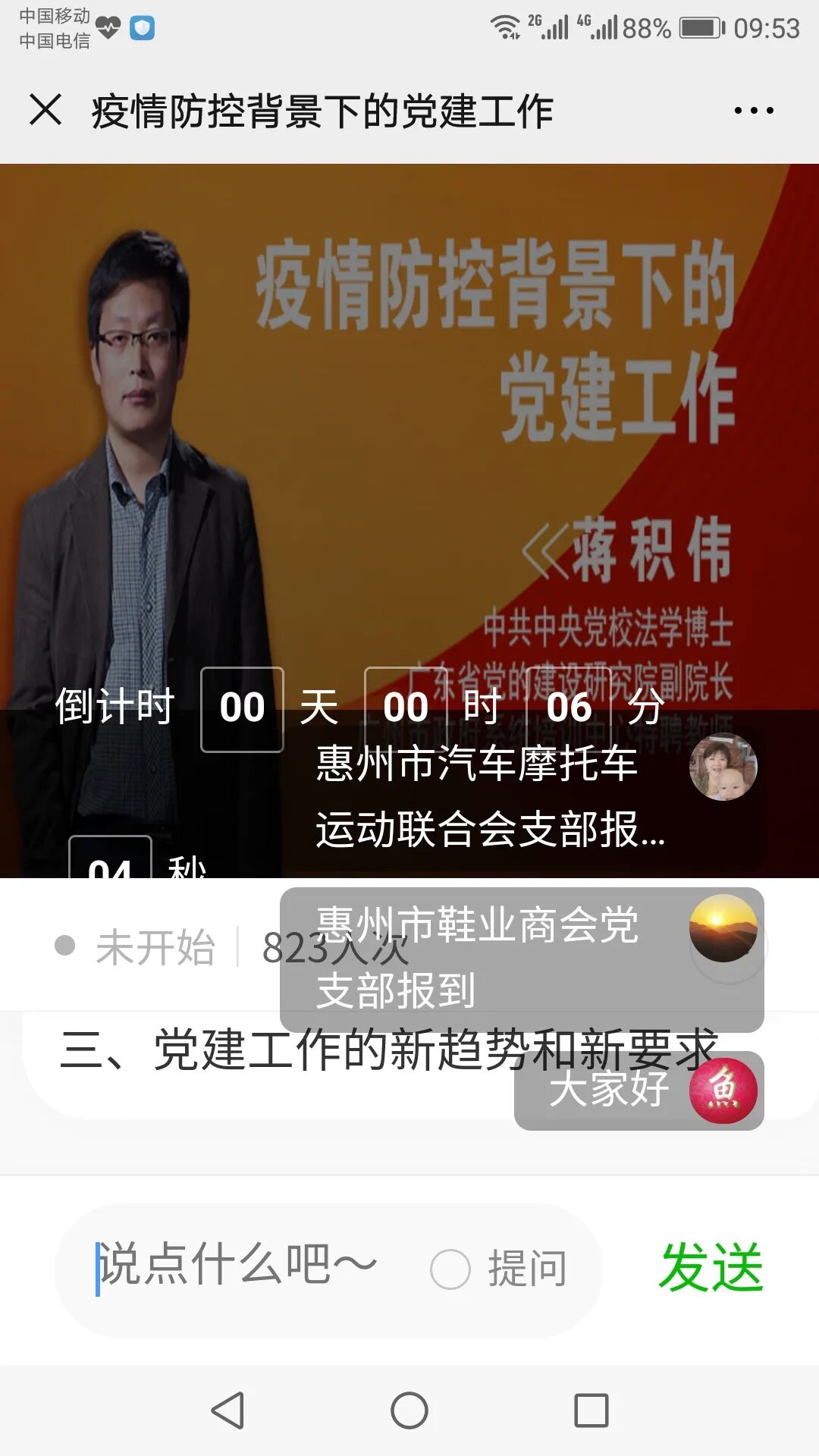 按照惠州市社会组织党委下发的《关于开展社会组织党建专题在线培训的通知》文件精神,2020年4月24日上午,惠州市鞋业商会党支部组织党员参加由惠州市民政局、惠州市社会组织党委主办的,主题为疫情防控背景下的党建工作专题线上培训学习,根据疫情期间不宜集中学习的实际情况,我会党支部书记林伟金、党员林益孙、张玉波等人自行上线参加。