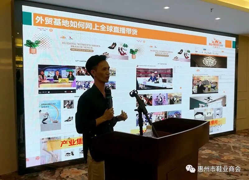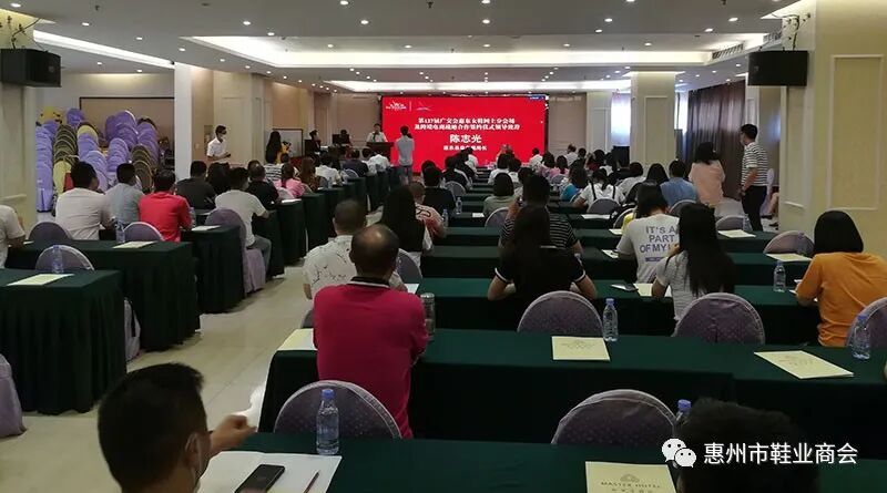为举办好本次活动,5月15日下午,参加惠东女鞋网上分会场的惠东县鞋业外贸企业负责人在万事达酒店2楼国宾厅参加了第127届广交会惠东女鞋网上分会场启动大会暨线上操作培训会,我会组织金冠鞋业、源利通鞋业、永捷鞋业、圣邦鞋业、龙源鞋业、鑫融合鞋业、鑫鑫润鞋材、创美鞋厂、易星鞋厂、众一鞋厂、聚惠鑫鞋厂、鑫华骏贸易等会员企业参加了分会场活动的产品上线、产品走秀、采购对接、网络直播等方面工作的衔接与操作培训。
