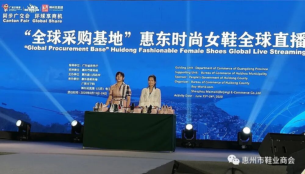 为擦亮惠东“中国女鞋生产基地”、惠东时尚女鞋“全球采购基地”的区域品牌形象,提升惠东鞋业的全球知名度,协助鞋业外贸企业开拓国际市场,创新销售方式,以第127届广交会为契机,结合当前国际国内疫情防控和复工复产这一特殊环境,6月15日,惠东县人民政府在华美达广场酒店启动“同步广交会、环球享商机”——“全球采购基地”惠东时尚女鞋全球直播活动,推介惠东时尚女鞋。